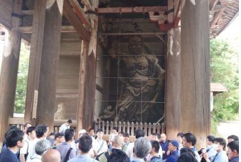 秋晴れの下、会員・委員含め総勢約100名が参加しました。西大寺住職より奈良時代の称徳天皇による四天王寺像鋳造から始まる西大寺の歴史を伺いました。続く見学では四天堂で創建時の姿の邪鬼と四天王像、本堂では灰谷健次郎の「兎の目」に登場する善財童子像、愛染堂では鎌倉時代に一度さびれた西大寺の再建を行った叡尊上人の凛とした姿が伺える興正菩薩寿像など、国宝・重要文化財などを拝見しました。