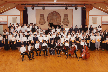 菁々会コーラス同好会は、カウンターテナー歌手の先生とピアノ伴奏の先生をお迎えして、毎月1回主に圓融館で活動しています。会員数は150名でクラッシックからポピュラーまで幅広いジャンルの楽曲を和やかな雰囲気の中、楽しくご指導いただいております。その成果は毎年菁々祭で発表いたします。今年度は「夢」をテーマに「夢をあきらめないで」「夢の途中」、室内楽部による弦楽伴奏オリジナルの「夢想曲」など全五曲披露し、ご好評いただきました。