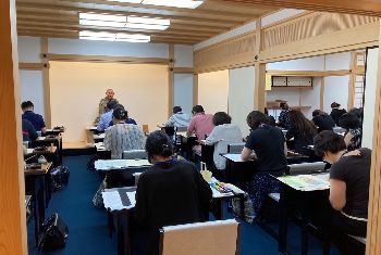 今年度の茶道同好会は東大寺長老の指導の下、茶道初心者から経験者、男性会員も含む総勢47名で活動しております。