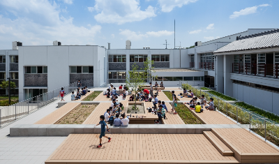 Sam-gati は「会うこと、交流、関係」などを意味するサンスクリット語。雑華ホールの上部やホールから校舎昇降口への階段部分なども、生徒諸君がより交流を深められるように設計された。この広場が、中学・高校の学年の垣根を超えて、広く集える場となることを願って名付けられた。