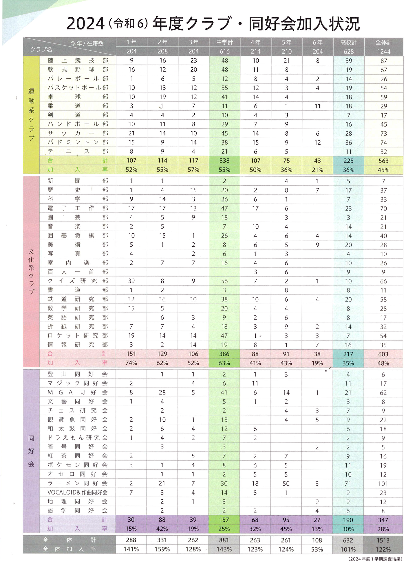 クラブ・同好会加入率