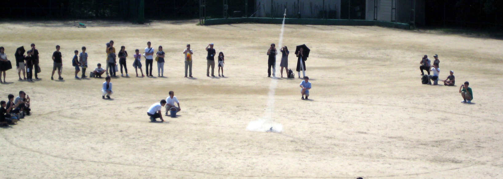 火薬を使って、運動場で定期的にロケットを打ち上げます。